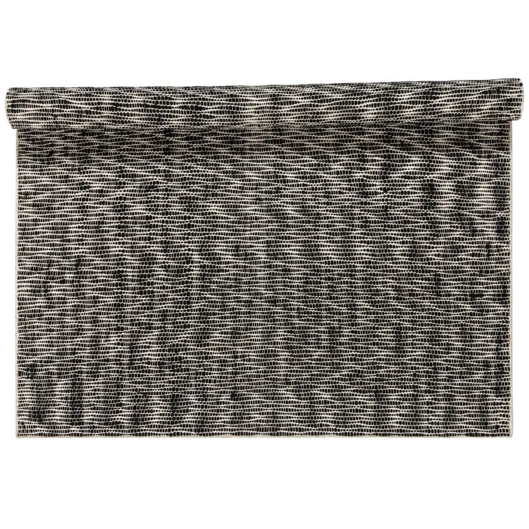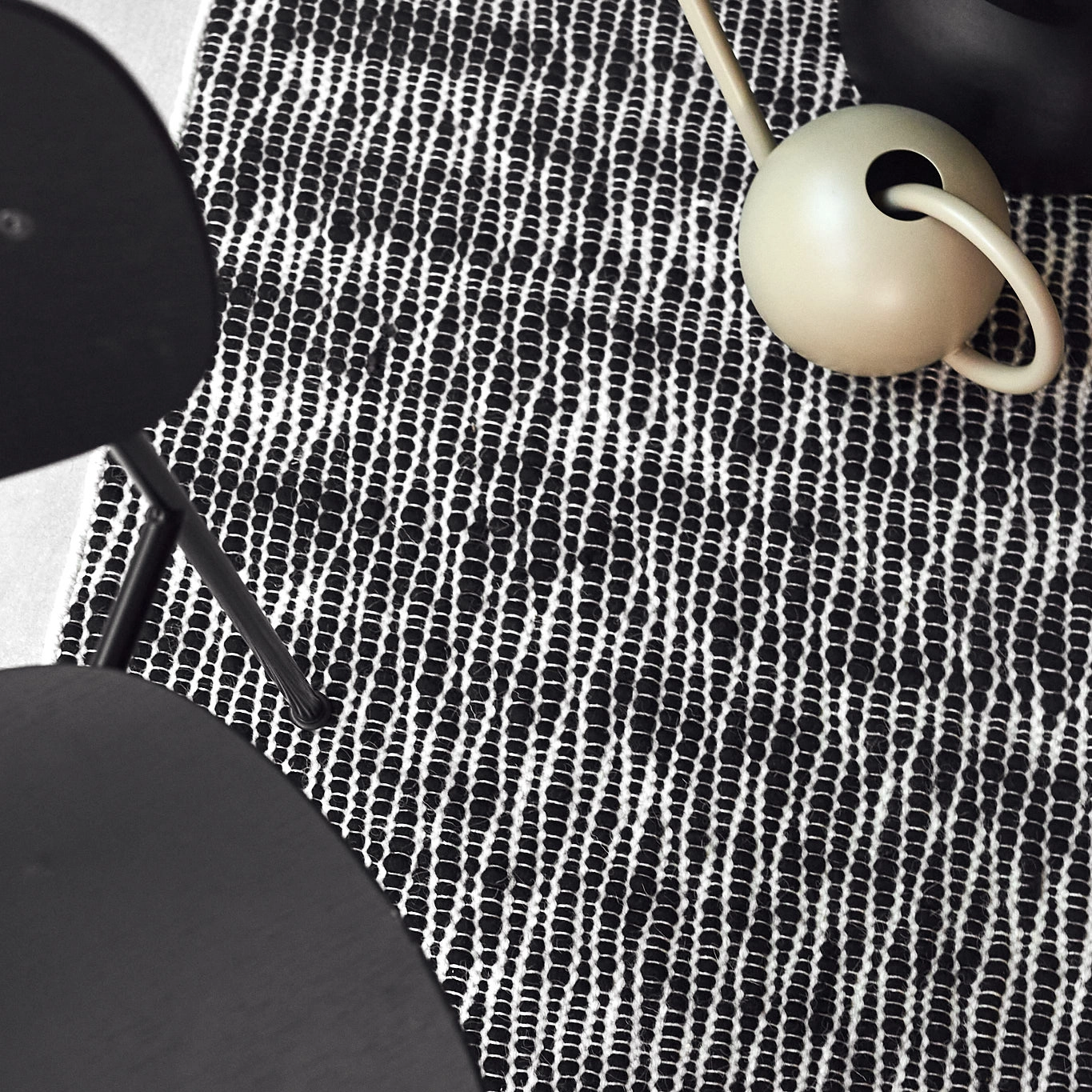 Het Pebble wollen vloerkleed zwart van Scandi Living is een tweekleurig vloerkleed van wol met zwarte elementen op een natuurwitte basis. Dankzij de speciale weeftechniek ziet de zwarte wol er bijna uit als kleine stenen, vandaar de naam Pebble. Het zwarte wollen garen varieert van dikte, wat het vloerkleed een onregelmatigheid en levendige look geeft. Het wollen vloerkleed Pebble is net zo geschikt voor in de woonkamer als in de hal.